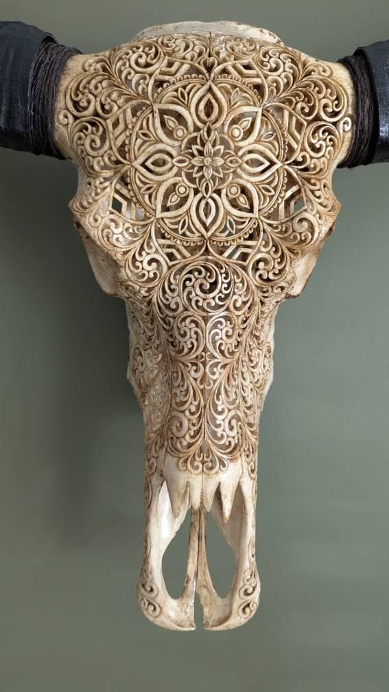 Beautiful handcrafted buffalo skull, exactly as described! Packaged well and delivered quickly. I would highly recommend this seller. Many thanks to the artist 😊