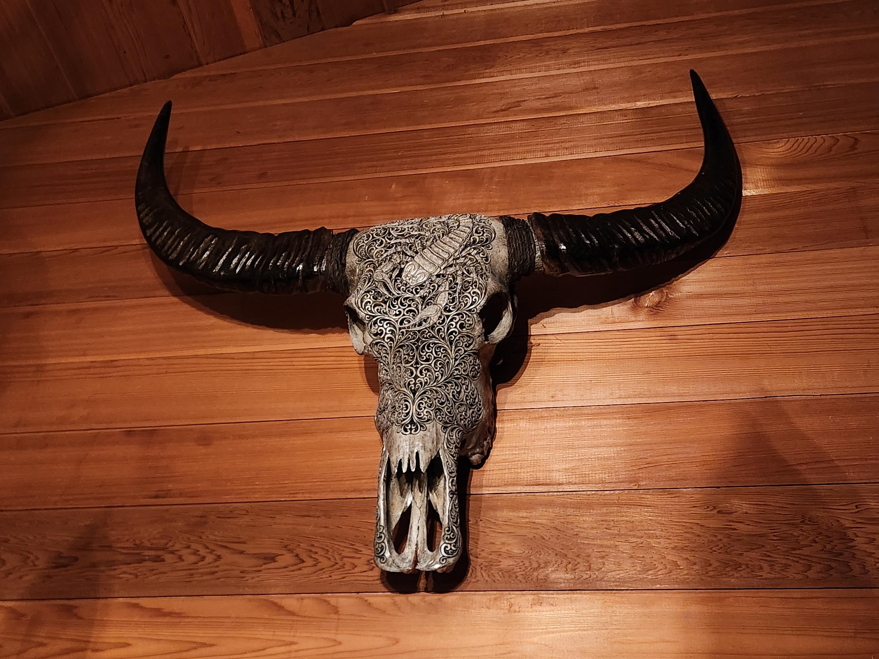 This skull is 100% natural buffalo skull bone material carving is very beautiful and suitable if placed in the living room and cafe