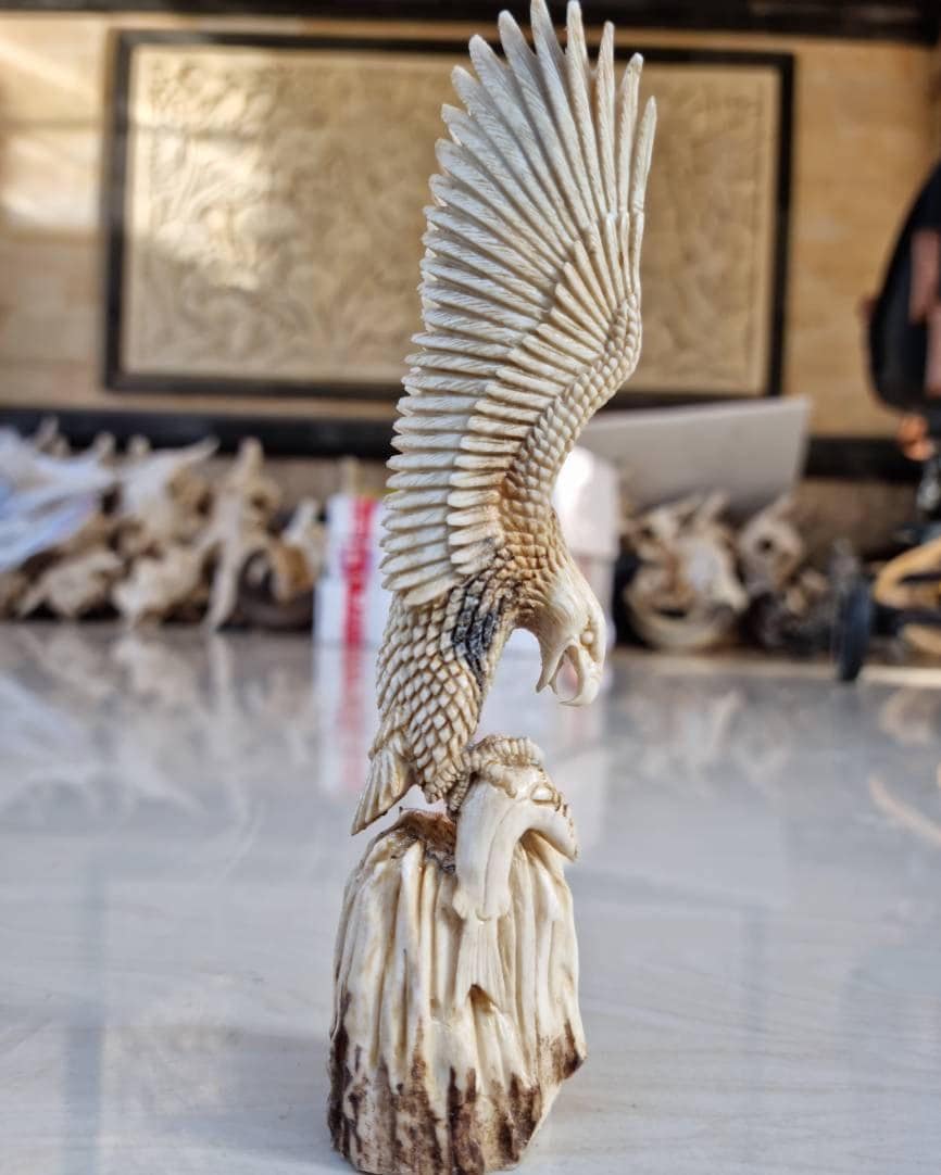 Hand carved moose antler eagle sculpture made from genuine natural antler.