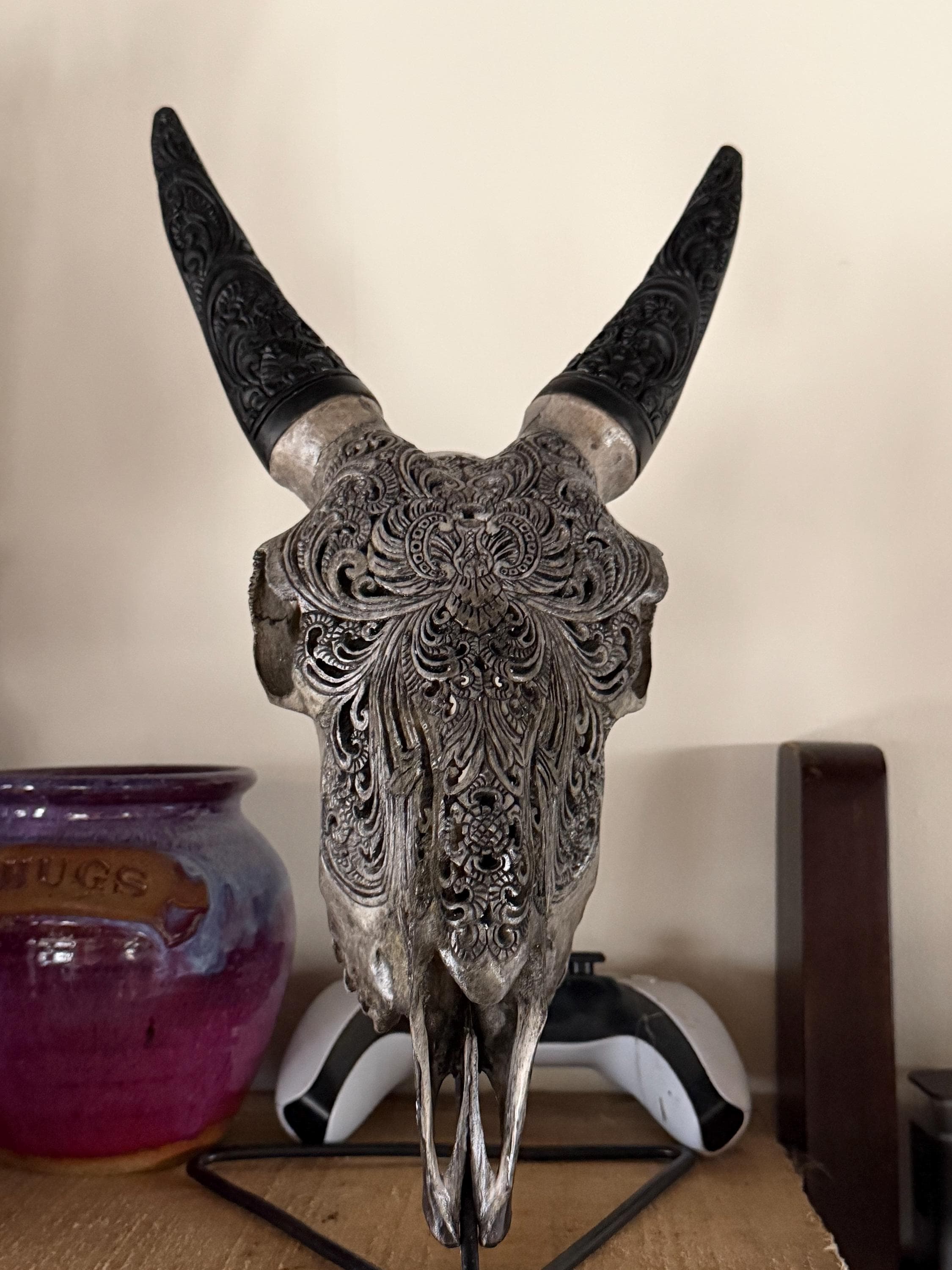 This skull is 100% natural buffalo skull bone material carving is very beautiful and suitable if placed in the living room and cafe