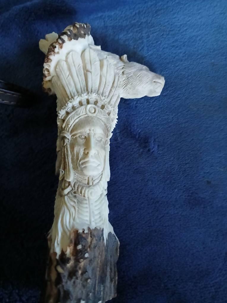 This stunning handle is perfect for custom knife makers, collectors, or as a unique display piece. It combines the raw beauty of natural antler with deep cultural and animal symbolism.