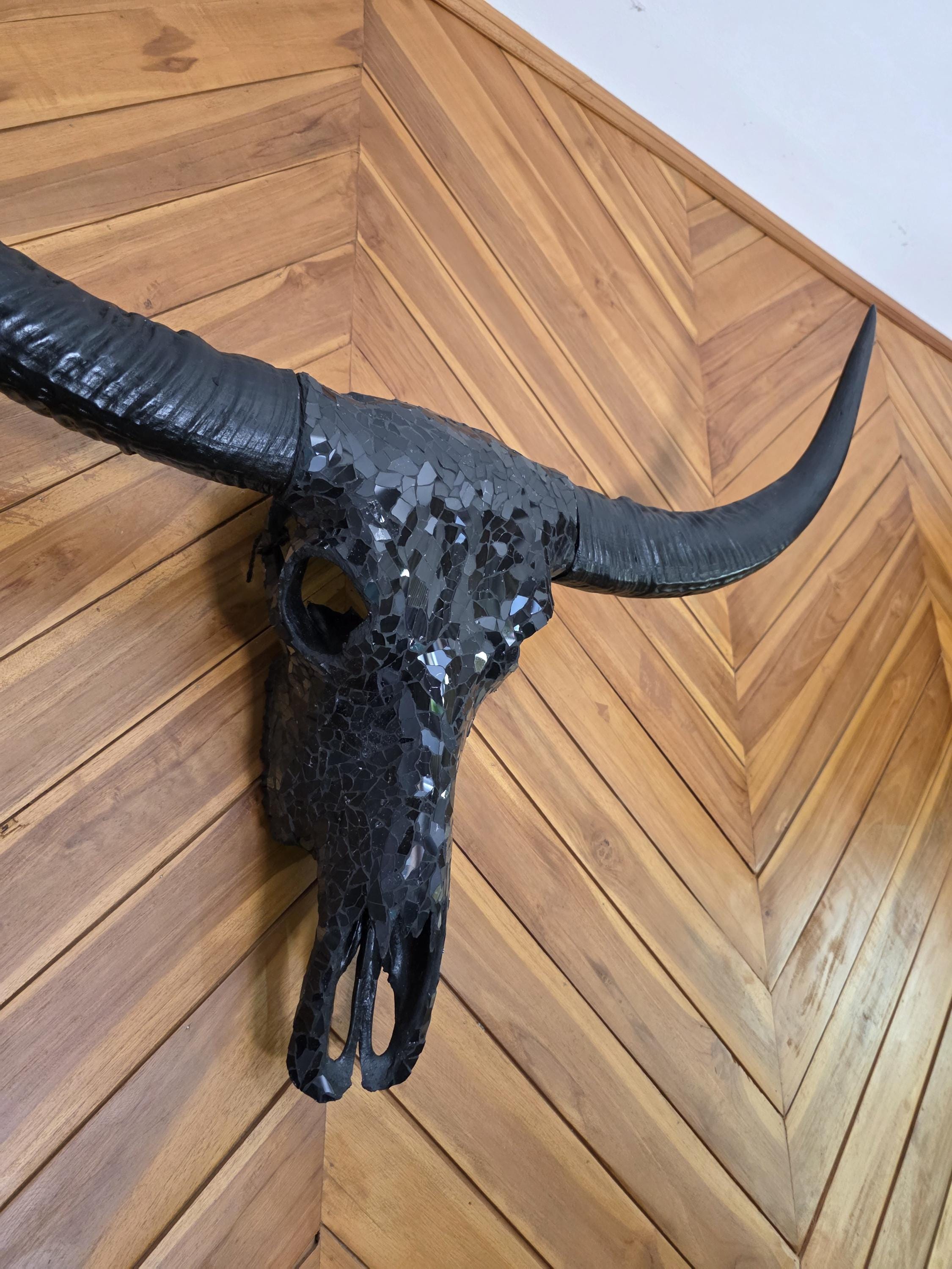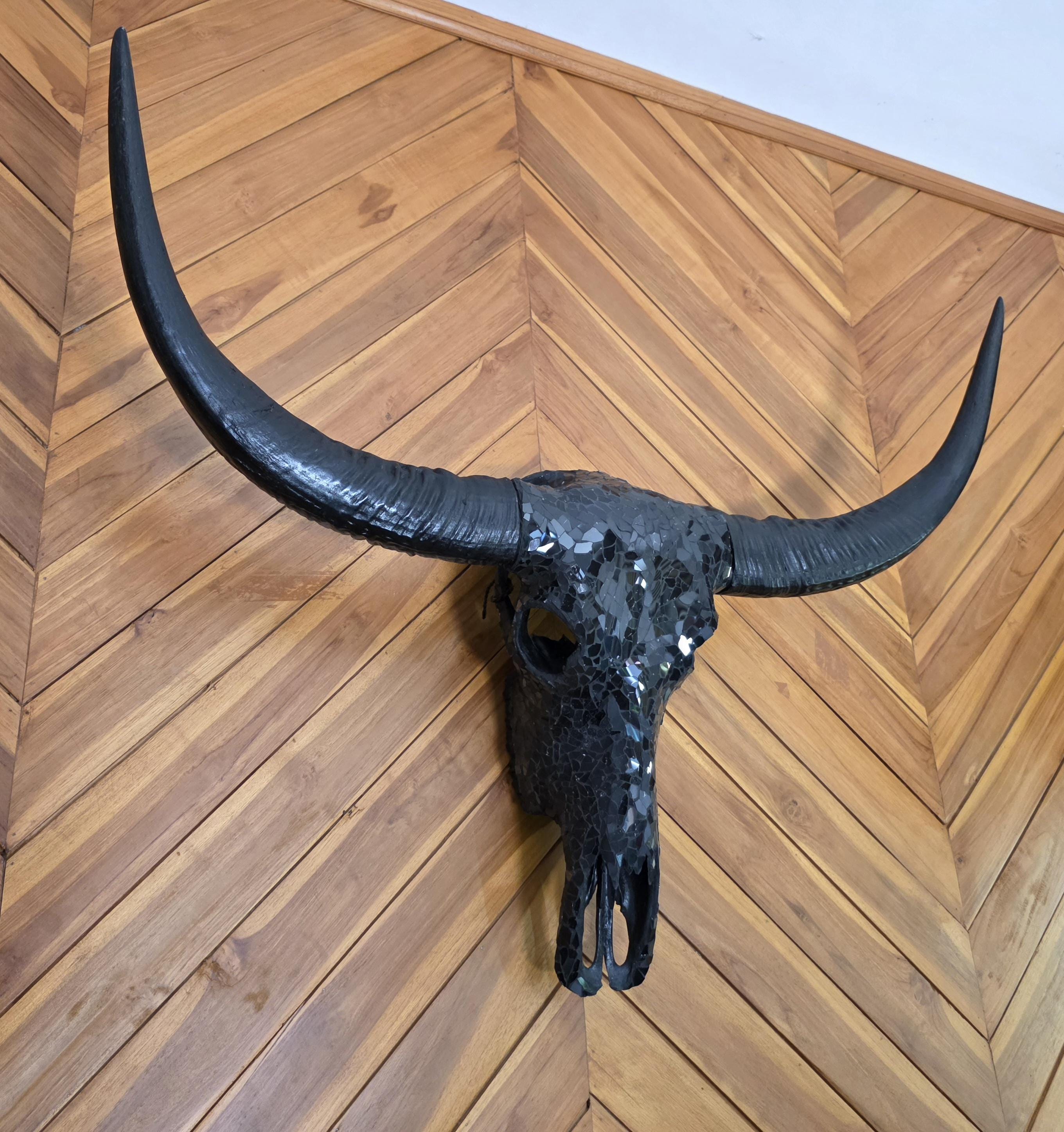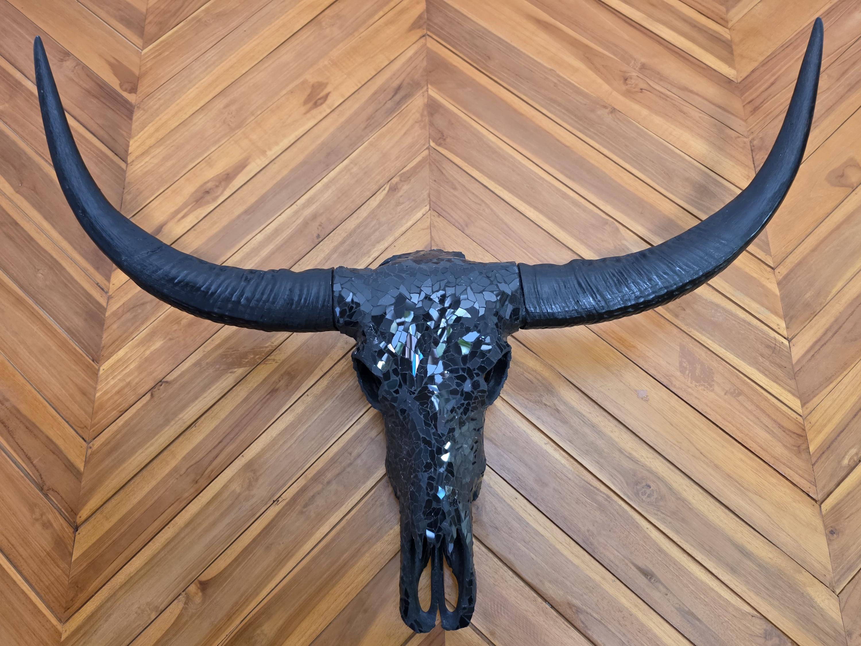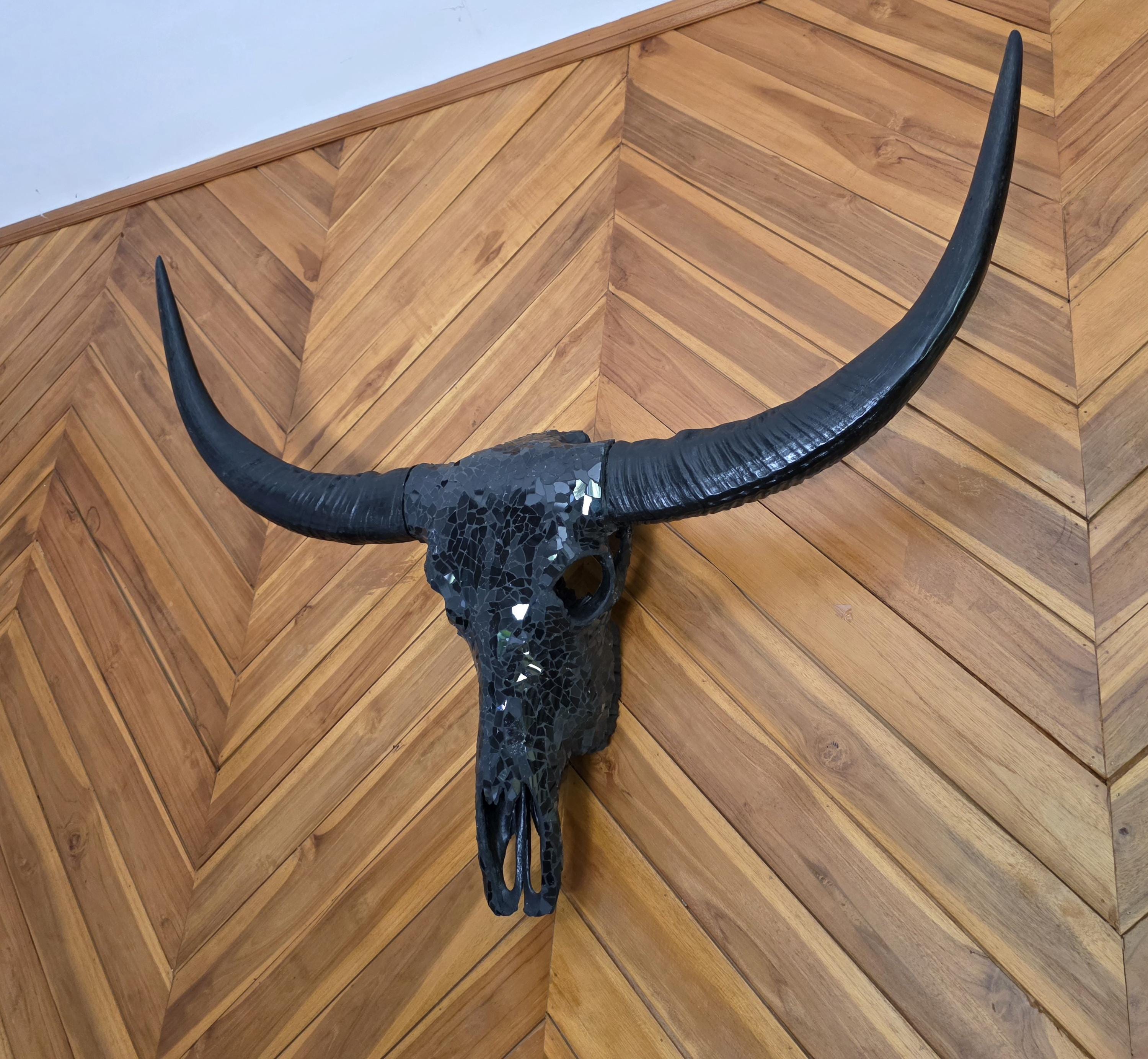 This Black Glass Geometric Buffalo Skull Wall Art is a striking statement piece crafted with a faceted, geometric design that reflects light beautifully from every angle. Inspired by tribal symbolism and contemporary luxury aesthetics, this artwork represents strength, protection, and resilience.