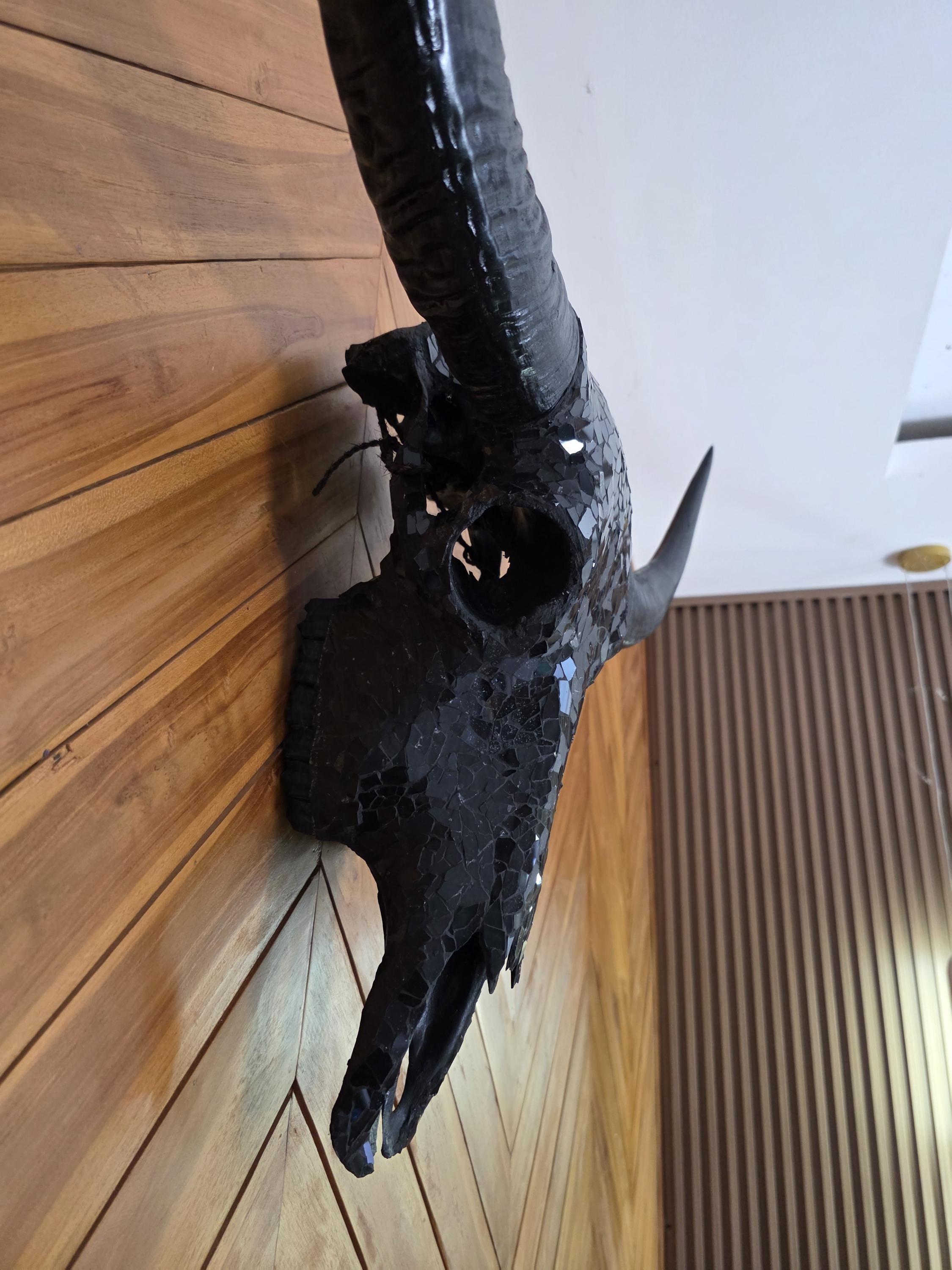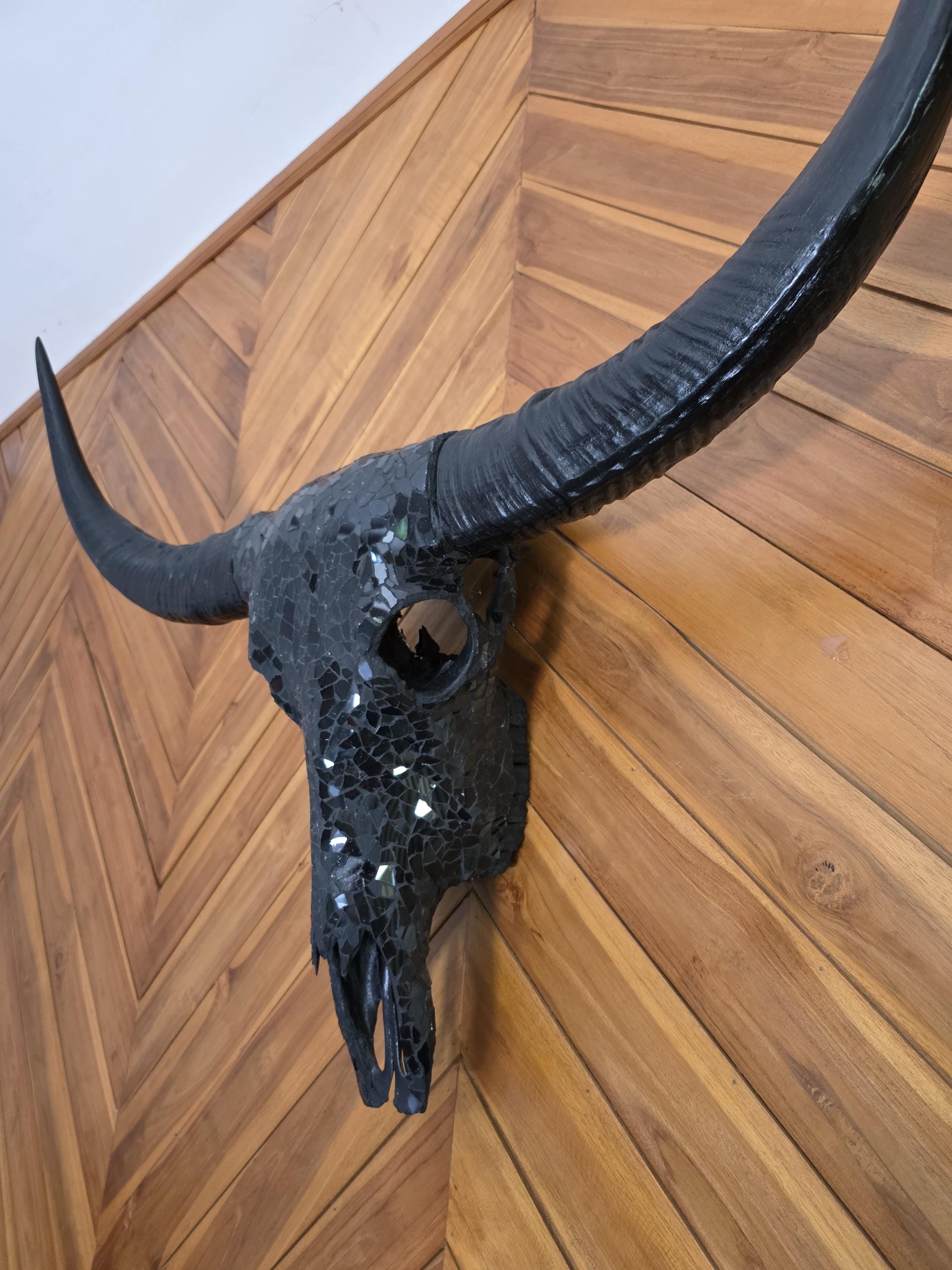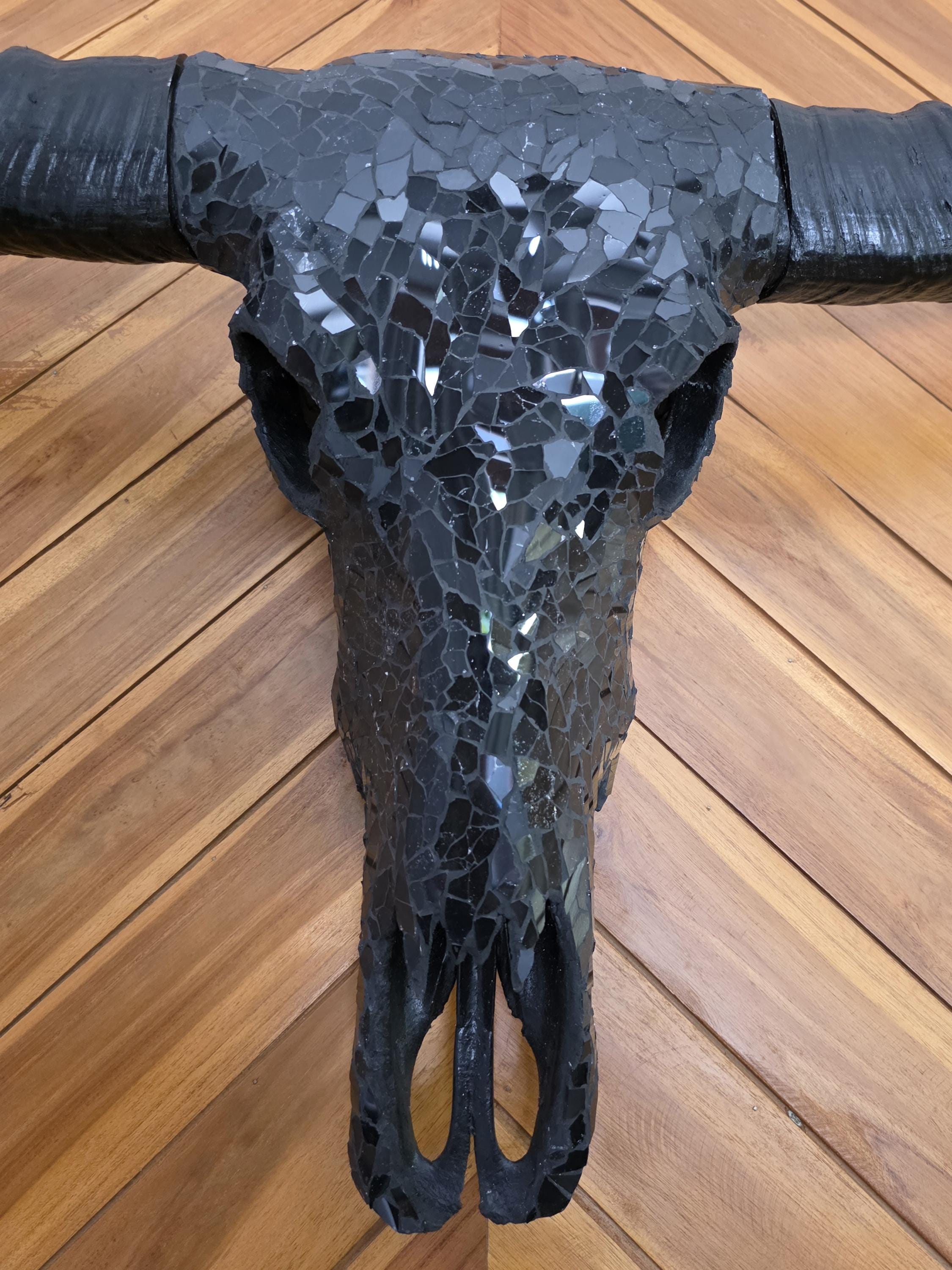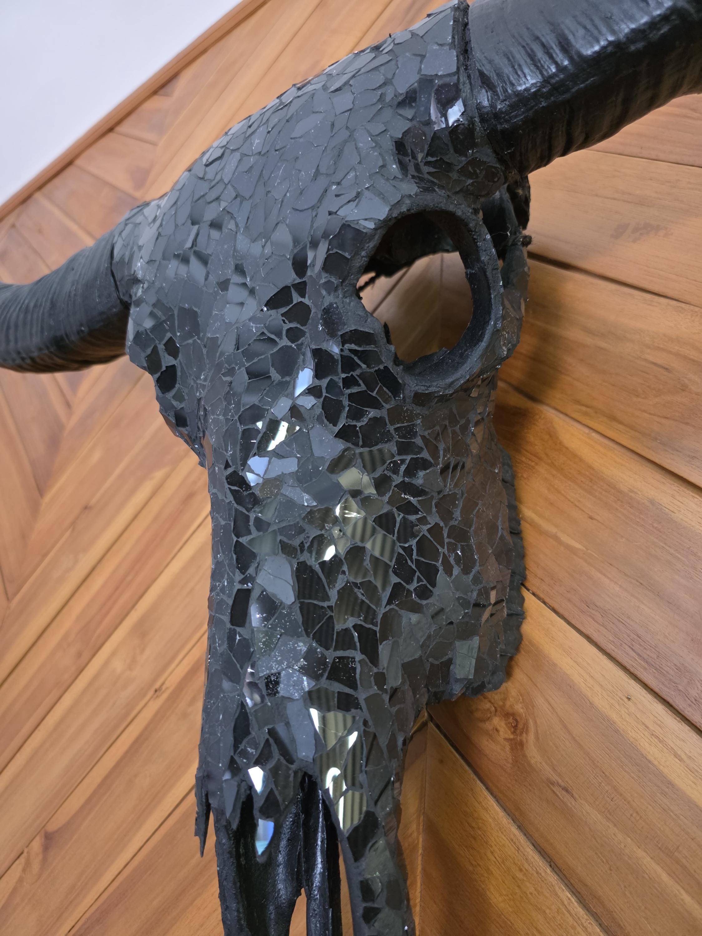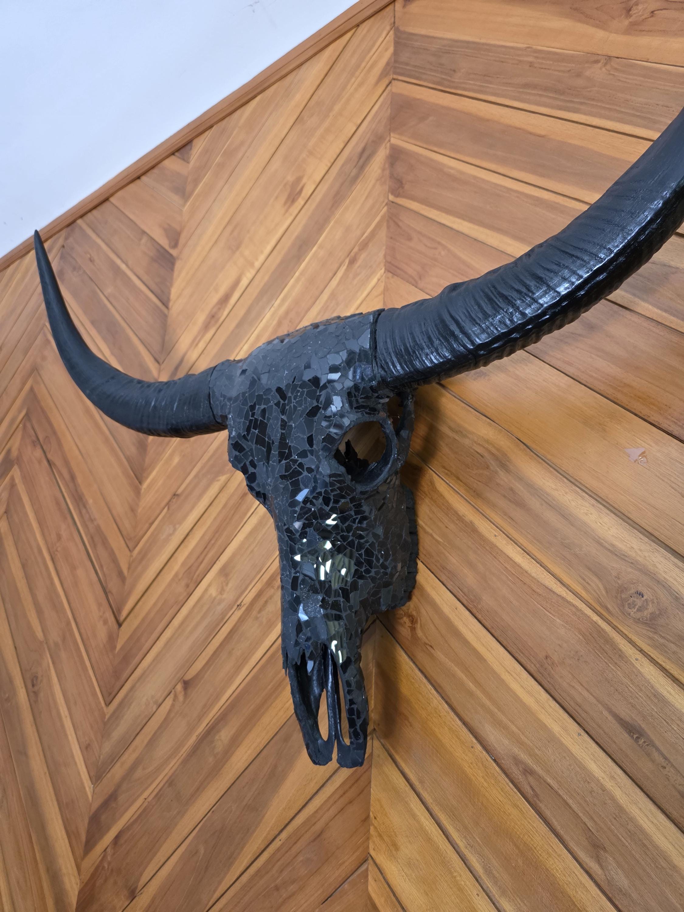 This Black Glass Geometric Buffalo Skull Wall Art is a striking statement piece crafted with a faceted, geometric design that reflects light beautifully from every angle. Inspired by tribal symbolism and contemporary luxury aesthetics, this artwork represents strength, protection, and resilience.