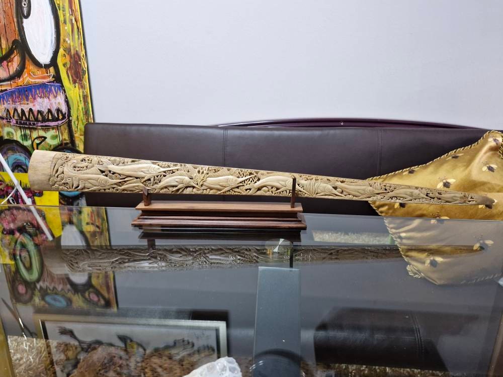Amazing piece of work! I am so excited to gift this to my father the quality is amazing and it looks just like the pictures, the total length of the bone was actually longer than I expected which was a nice surprise I definitely recommend purchasing this is you are debating it, this is my third purchase from this shop and I have me r had any issues or regrets!