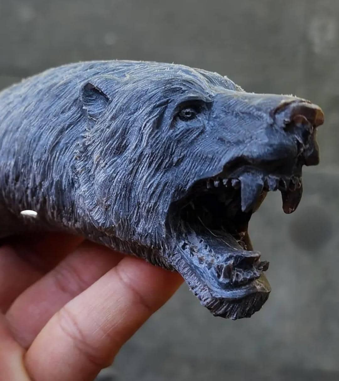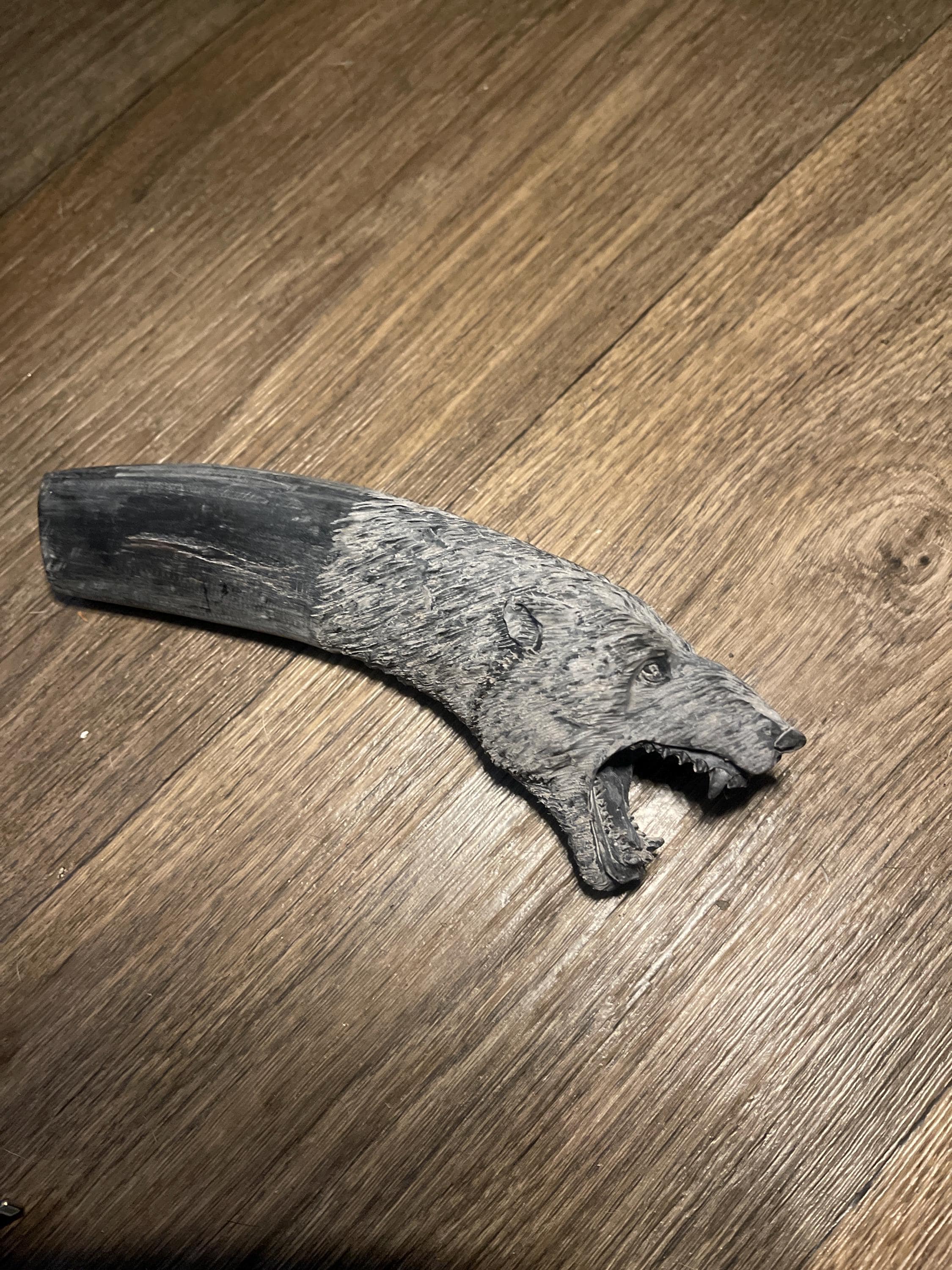 This stunning knife handle is hand-carved from genuine buffalo horn, featuring a detailed roaring bear head. A perfect choice for custom knife makers, collectors, and hunting enthusiasts, it combines durability with striking artistry.