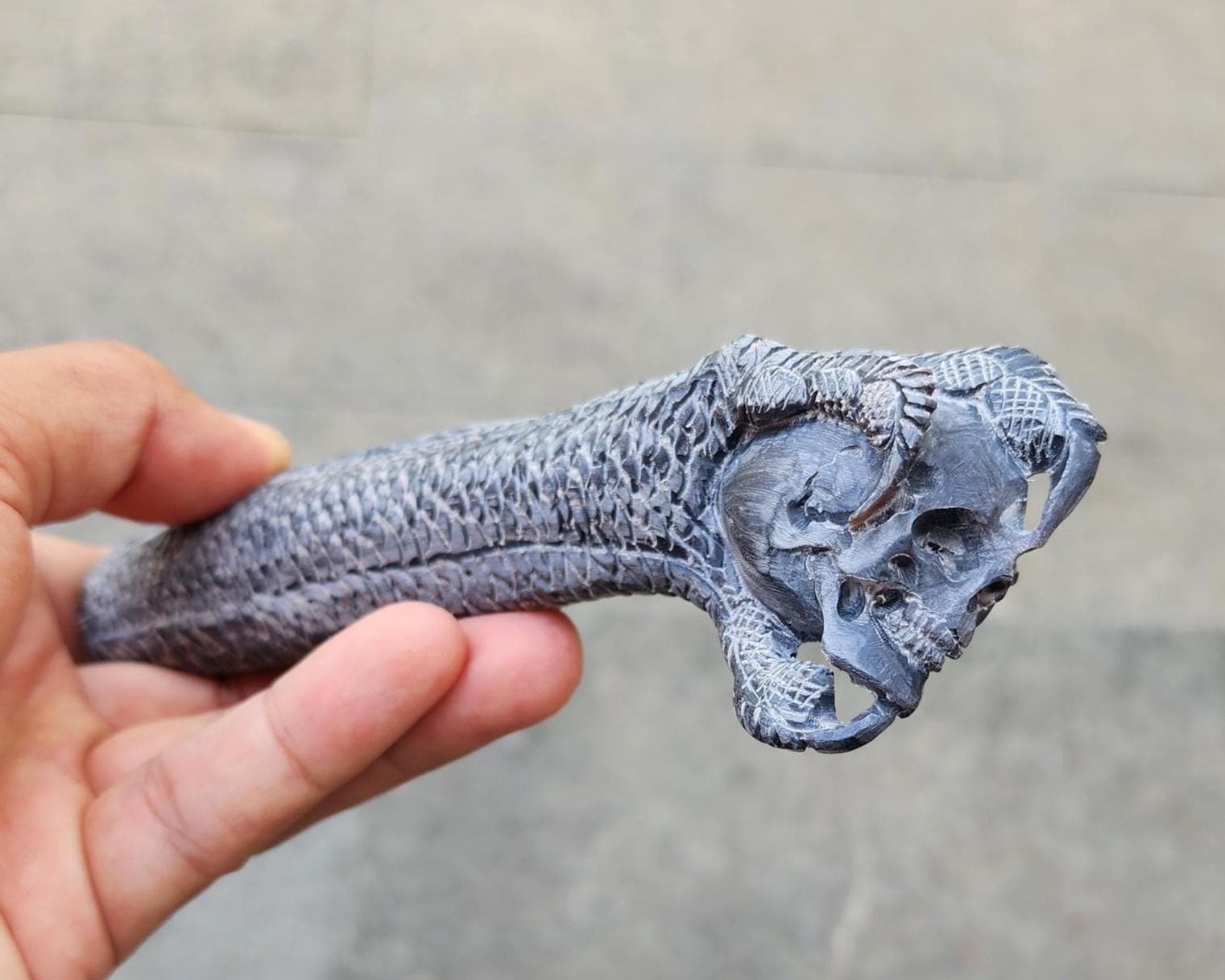 Carving: Hand carved beast head