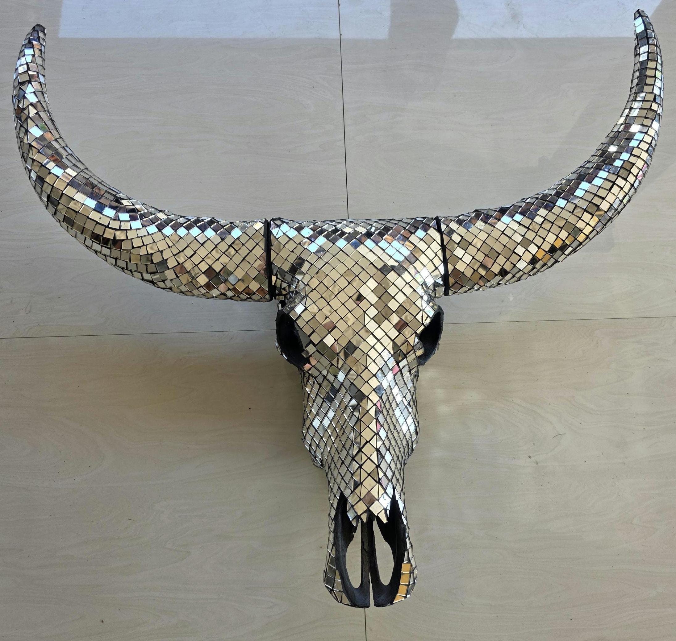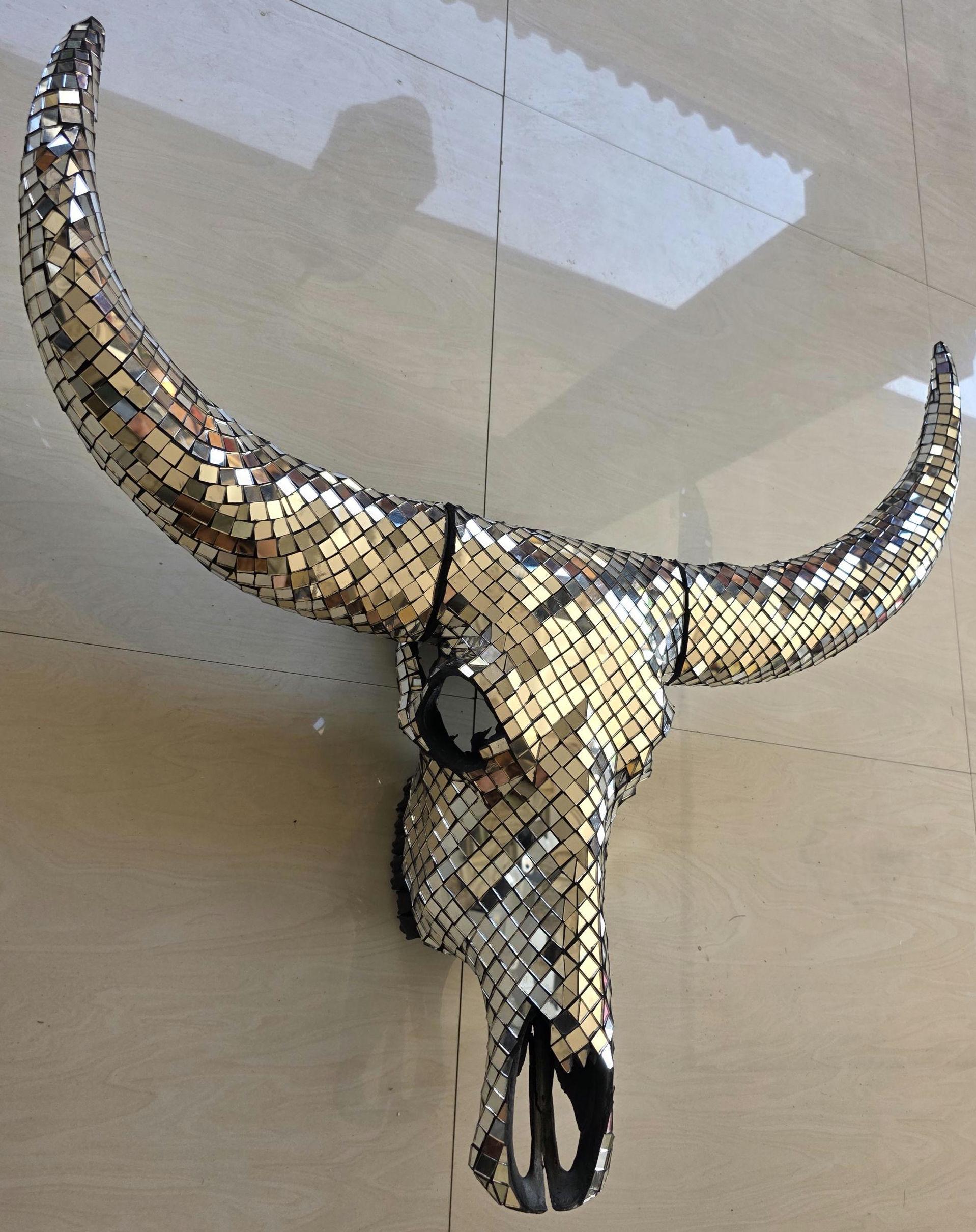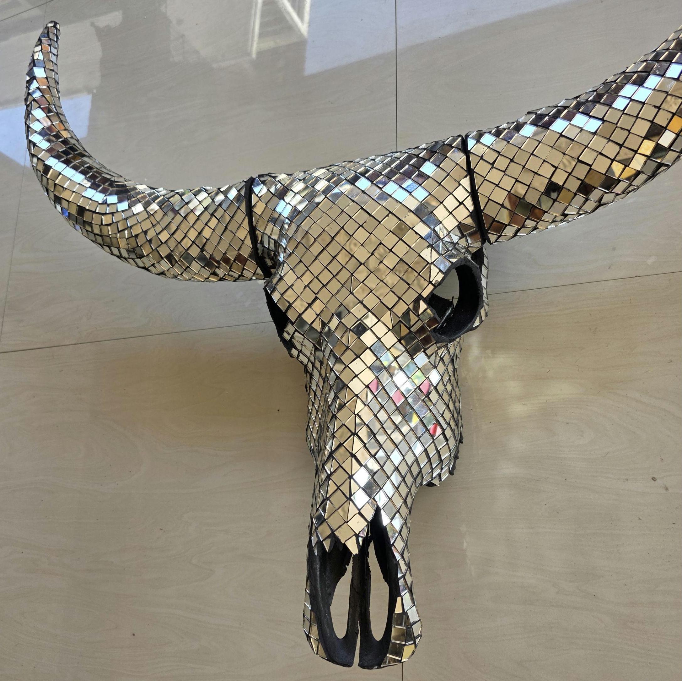 Finish: Silver mirror tiles on skull & horns
